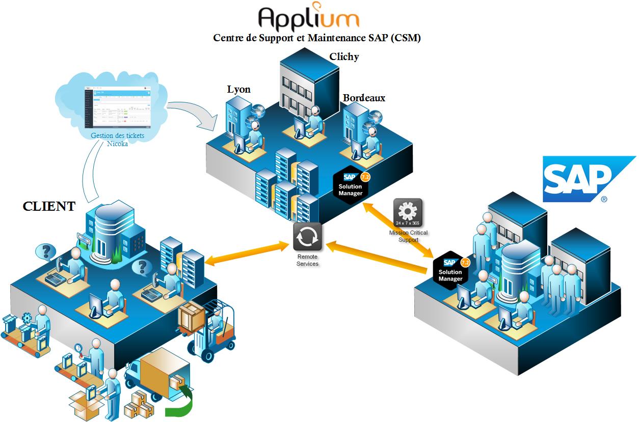 La Maintenance SAP est assurée par le Centre de Support et Maintenance (CSM) SAP d’Applium (mêmes équipes que pour les prestations de TMA et de TME).