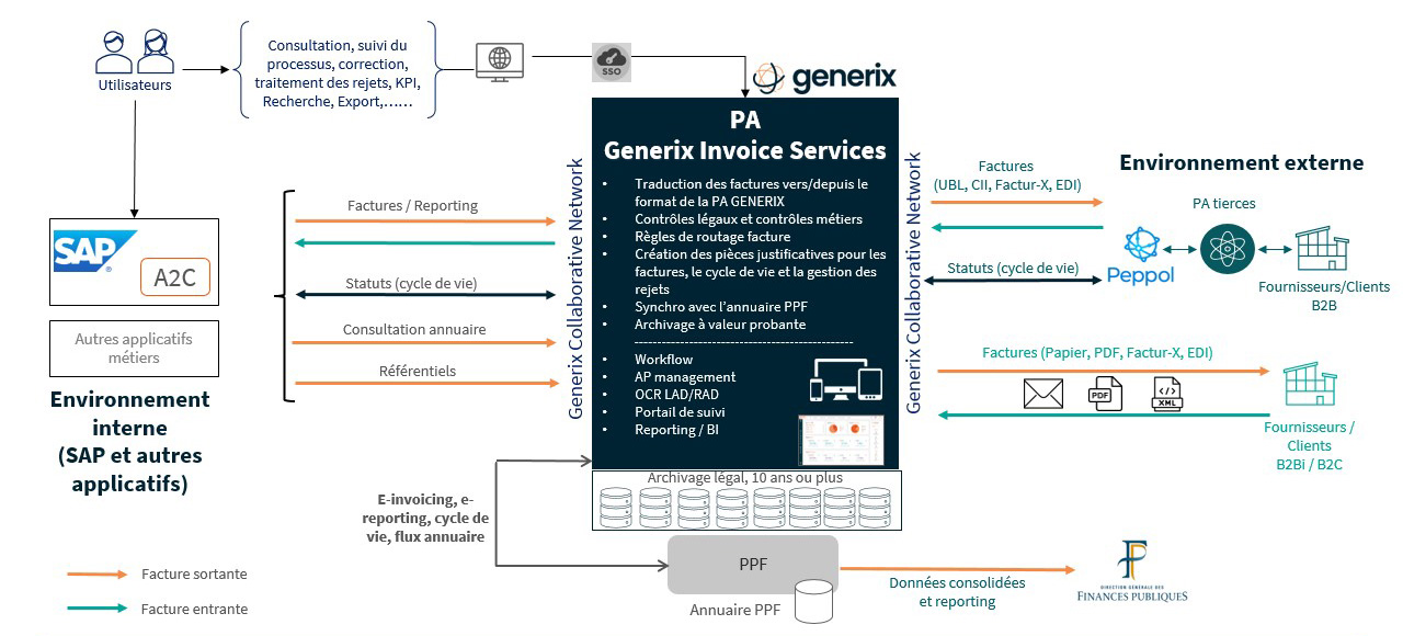 Immatriculée PA n°2, Generix Group est un pionner de la réforme de la facturation électronique en France en tant que membre actif de l’autorité Peppol et du FNFE (Forum National de la Facture Electronique).