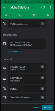 - Saisie des temps passés : temps de trajet, temps effectif d’intervention
