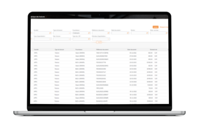 - Accès des fournisseurs à un portail depuis une URL publique pour déposer des factures et suivre leurs paiements,