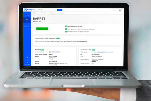 Trustpair est conçu en ce sens. Ce logiciel SaaS anti fraude vérifie les données du référentiel fournisseur grâce à son accès bancaire français et international et vous alerte pour toutes anomalies et erreurs. Son contrôle automatique en temps réel s’applique à tout changement dans la base tiers, ce qui vous assure d’être protégé en permanence. Avec Trustpair, vous luttez ainsi contre la fraude au faux fournisseur.